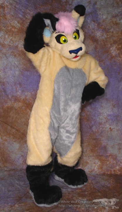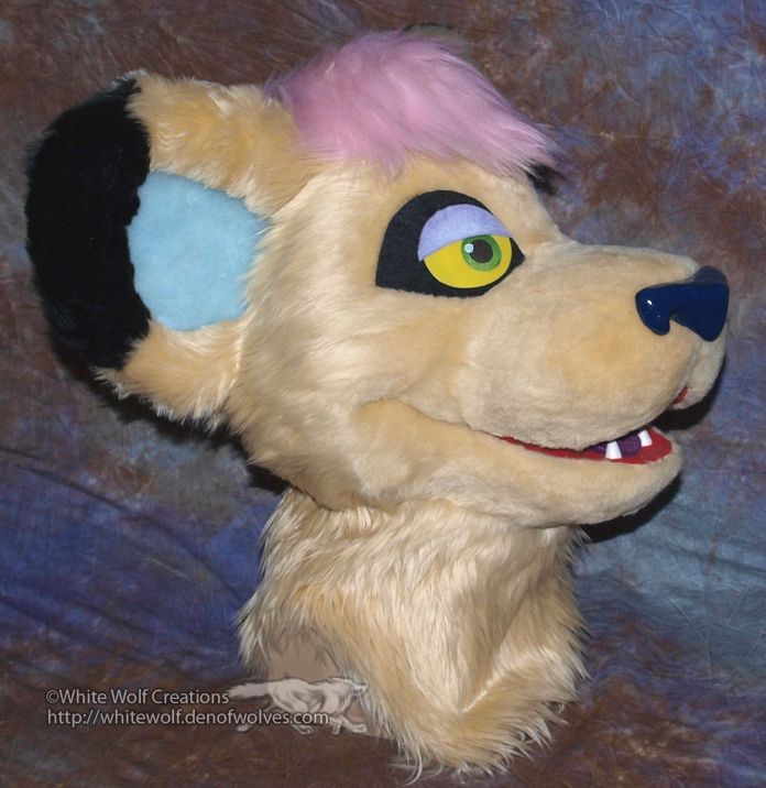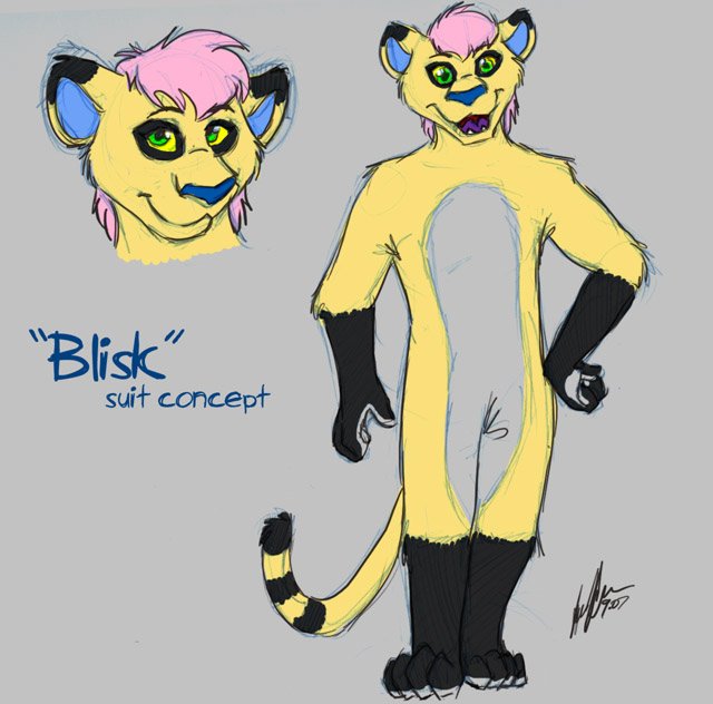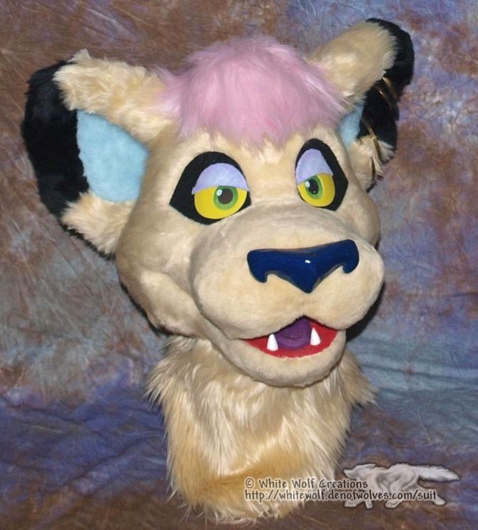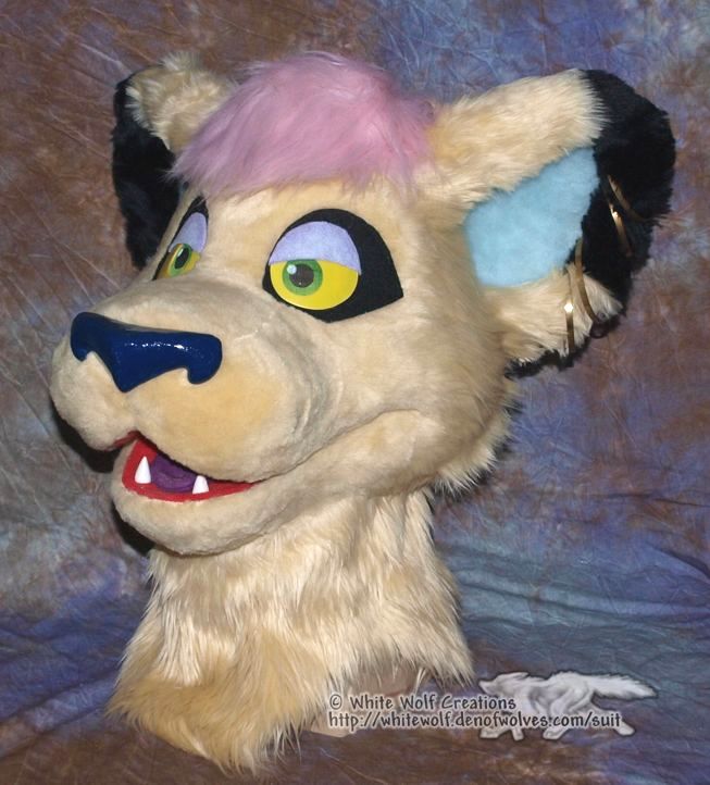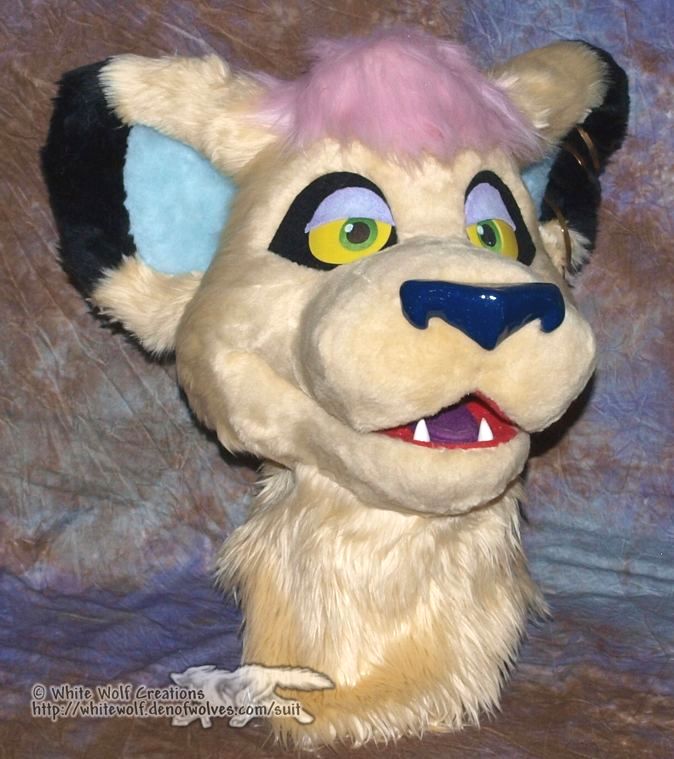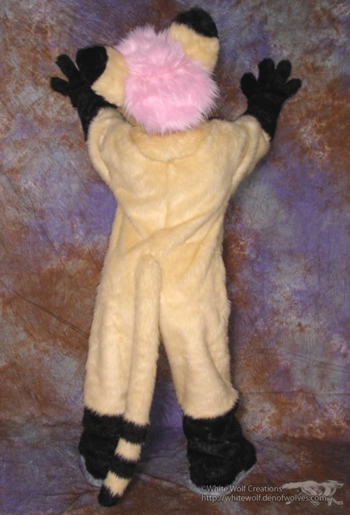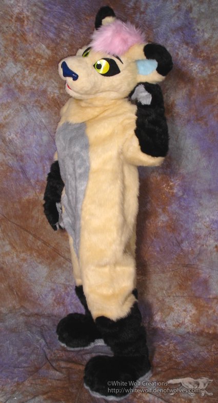 Concept drawing I did for this panther/lioness mix character. This suit has undergone a near-complete makeover using a different type of fur (versio n1 below). Here are the pics of the head with the new look. This was a fun one to do, with the different coloring and markings. Moving jaw head. The pink fur was sewn into shape to create the effect of having longer 'hair'. Model is a bit smaller than the owner, so the suit appears pretty baggy!