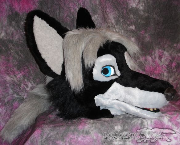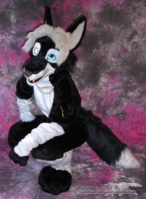 3D eyes AND movable jaw on this one. I also did some 'sculpting' with the hair to mimic the style in his character pic as much as possible. Very pleased with how the legs turned out. I simply designed the pattern creating 'pockets' for the haunches and heels, and stuffed them with polyfill stuffing. THANKFULLY the owner wasn't much taller than I am, so I was able to model the suit and the legs don't look TOO too long.