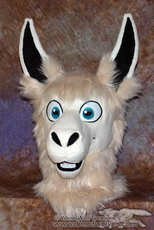 This is a very simplified llama head. He was done very impromptu, as a last-minute project for a child's school play. So all of my little suit-making intricacies and refinements didn't go into this one. He is still of good quality none the less, and well-loved by his owner. :)