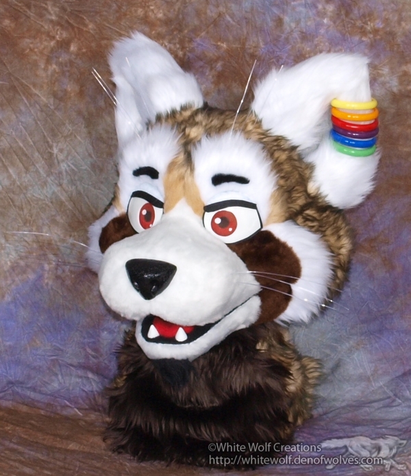 Runtt the red panda.. second version of one of the first handful of fursuit heads I ever made. Made some custom earings for this one.
