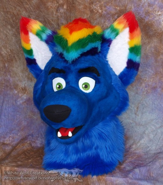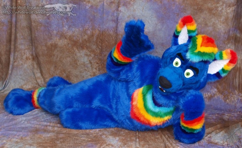 Fursuiting :: Tristan Suit This guy was interesting! And required a bit of work to get all those colors in.. I had a bit of artistic license with this one to put in as many rainbows as I could think of.. while still keeping from looking too crazy. I am pleased with it! ALL of those colors are individual strips of fur sewn together and into the suit. The hair as well.
