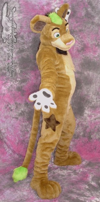 My concept drawing for Wolfpaw's second suit, Vincent the lion cub. One of my favorites suit thus far.. again, gotta love the felines. I really enjoyed making this head and very please with how cute it came out. The symbols were a tough one to get sewn onto the body, but they add a nice touch of uniqueness.